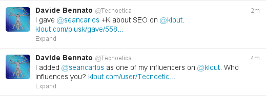 Klout allows those who participate in their system to give points to others by endorsing them as an influencer and/or giving them a +K as an influencer on a specific topic.