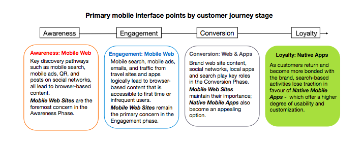 It is clear, however, that users gravitate to a certain type of mobile experience at specific points throughout the relationship.